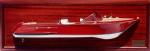 Half Model Chris Craft 1930 In January of 1930 the Smiths introduced their most ambitious offerings to date, twenty-four models of boats ranging, their largest production craft yet. It was a clear signal to both consumers and the marine industry that Chris-Craft was not affected by widespreadrumors of impending disaster as a result of the crumbling American economy. "here they come",an article begins, "a long line of 24 new Chris-Craft - the largest and most complete motor boat spectacle ever presented. This line of model ships is made by highly skilled craftsmen who work with remarkable precision using only the finest materials. These craftsmen have been trained for years to become Master Artisans. Hundreds of hours go into making each model, from the original lofting of plans to the finishing touches. Hull construction is either hand laid-up resin or plank on bulkhead with a selection of precious wood. Deck details are reproduced with custom-made brass and chromed brass castings. Hand sanded hulls are finished with marine varnishes and polyurethane paint.