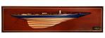 Half Model Reliance 1903 The Art of making half hulls is as old as ship building itself. Half Hulls were crafted by ship builders to give three-dimensional shape to their hull designs. This line of model ships is made by highly skilled craftsmen who work with remarkable precision using only the finest materials. These craftsmen have been trained for years to become Master Artisans. Hundreds of hours go into making each model, from the original lofting of plans to the finishing touches. Hull construction is either hand laid-up resin or plank on bulkhead with a selection of precious wood. Deck details are reproduced with custom-made brass and chromed brass castings. Hand sanded hulls are finished with marine varnishes and polyurethane paint.